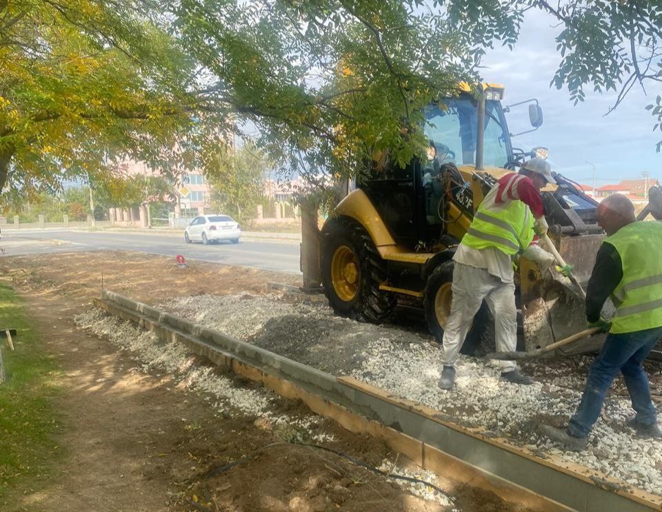 На участке по ул. Аллея Дружбы (трасса 2) завершена бетонная заливка 300 погонных метров бортового камня. На третьей трассе 2 тыс. м.п. борта установлены на "маяк", заливка запланирована на понедельник.