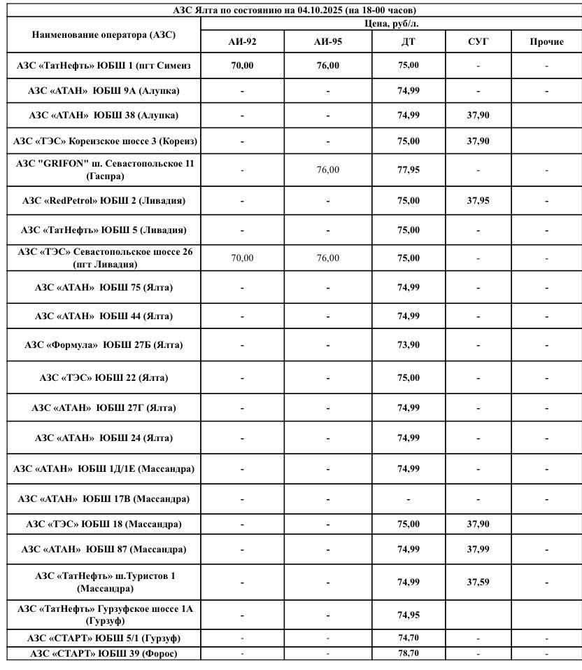 Актуальная информация по заправкам в Крыму, где можно приобрести бензин: список АЗСИскусственный интеллект «Крым 24» также проанализировал цены на топливо на крымских заправках и предоставил аналитику, где дешевле и дороже заправляться: актуальные...
