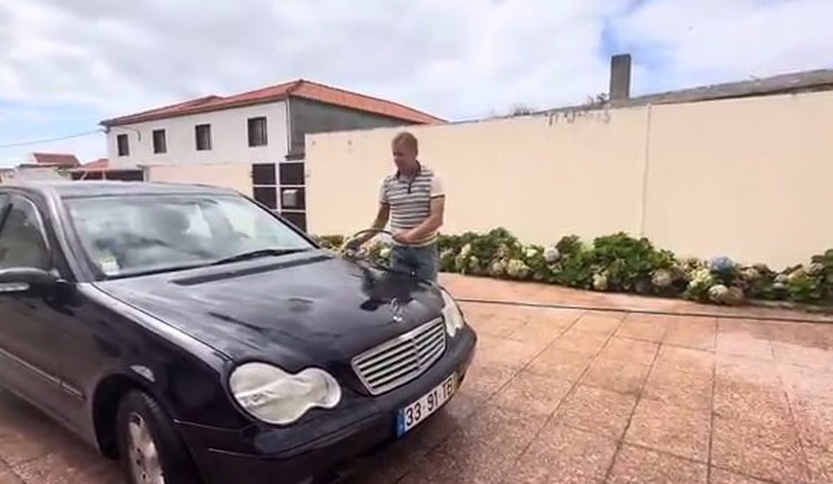 Крымчанин сам моет авто. Фото: кадр видео Сафари Парк Тайган/Tg
