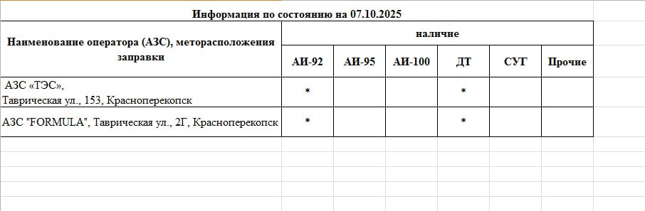 Оперативная информация о наличии топлива на автозаправочных станциях, расположенных на территории города Красноперекопска.