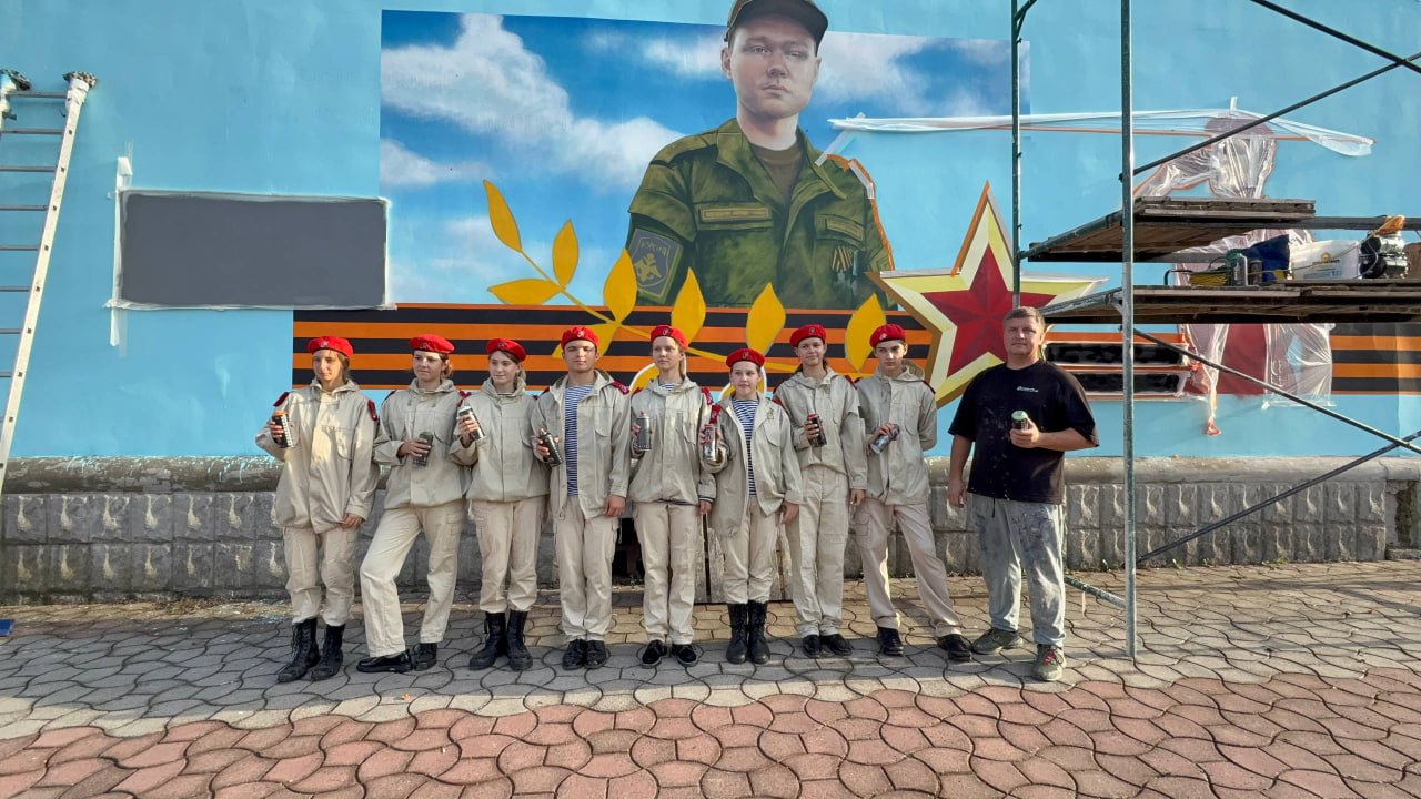 На стене изображают портреты участника СВО и одного из юнармейцев города, принимающего активное участие в мероприятиях, имеющего достижения и награды. Пока их имена организаторы акции – Всероссийское детско-юношеское военно-патриотическое общественное движение «ЮНАРМИЯ» – держат в секрете.