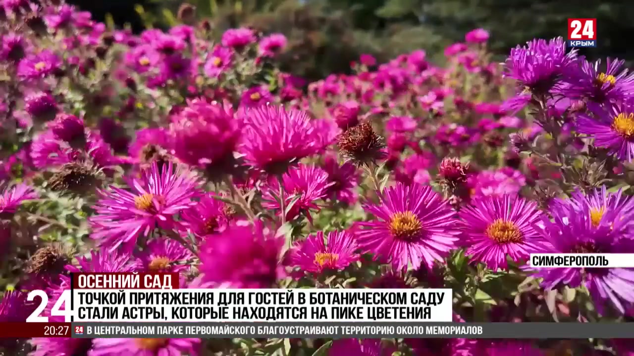30 сортов сентябринок, октябринок и хризантем расцвели в Ботаническом саду. Среди них есть растения собственной селекции: «Николай Багров», «Таврический Университет», «Вернадский». Нежно-голубые, фиолетовые, розовые, красные – их можно увидеть и сфотографировать в зоне Большой Поляны. Именно там сейчас точка притяжения гостей. Коллекцию планируют пополнить. Чем именно? Алие Мустафаева расскажет.В