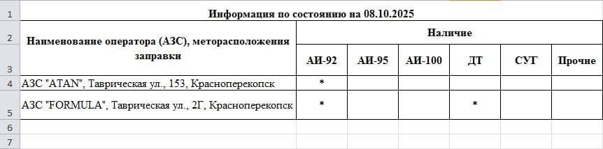 Оперативная информация о наличии топлива на автозаправочных станциях, расположенных на территории города Красноперекопска.