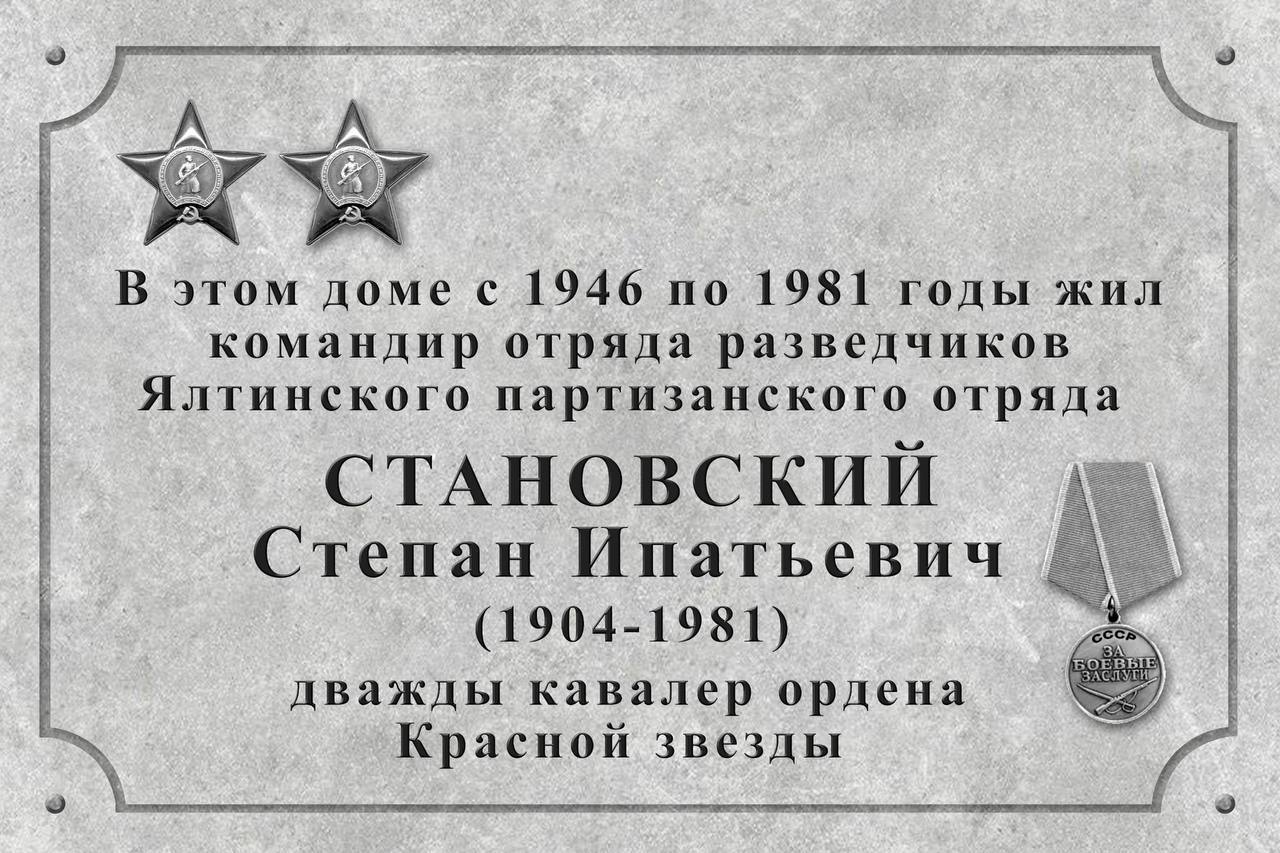 Мемориальную доску, посвящённую командиру отряда разведчиков Степану Становскому, установят в Ялте
