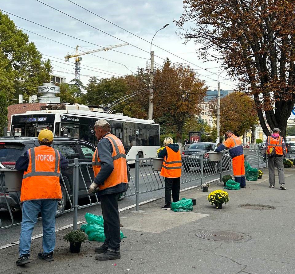 В Симферополе продолжается осеннее обновление цветочных композиций. Сотрудники МБУ «Город» высаживают яркие осенние цветы в кашпо, установленные вдоль городских улиц и проспектов.