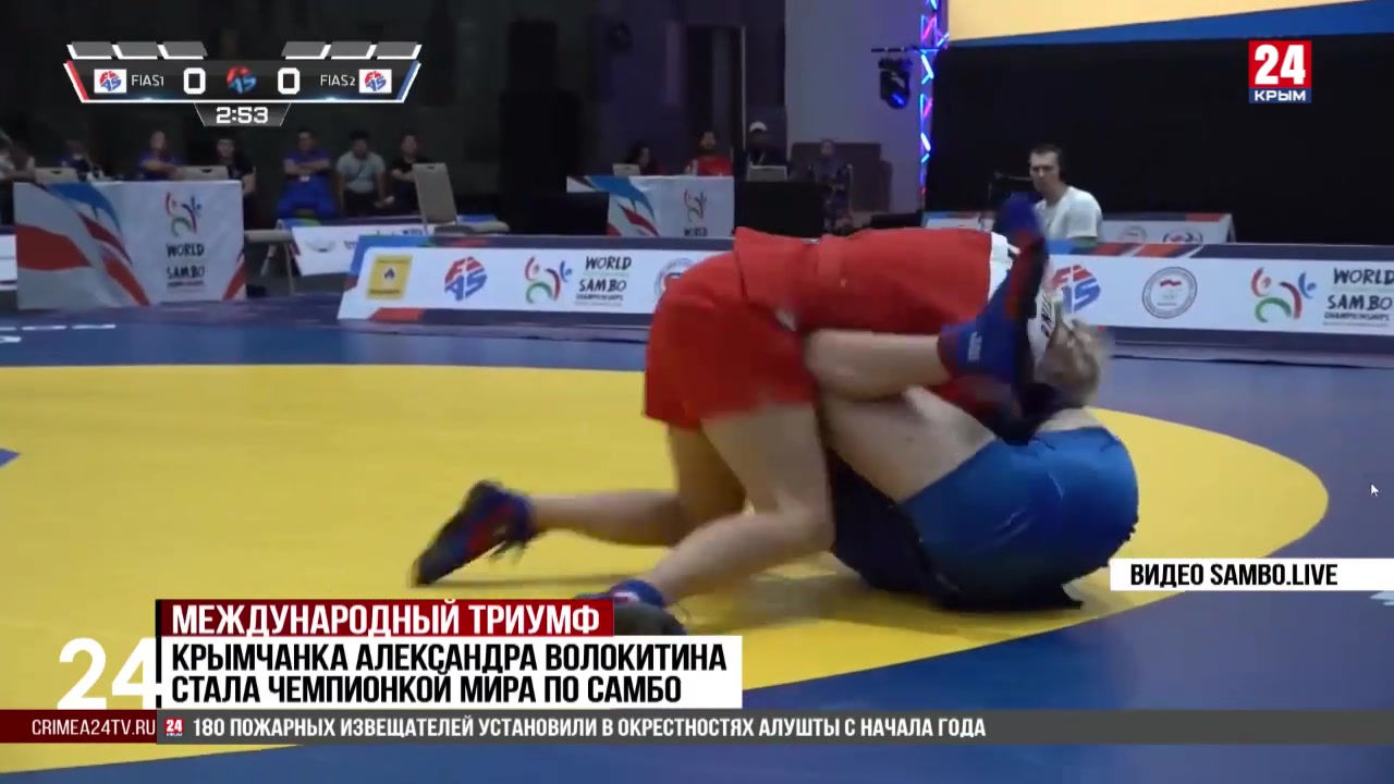 Крымчанка Александра Волокитина стала чемпионкой мира по самбо. В первенстве планеты, которое завершилось в Индонезии, воспитанница ялтинской школы борьбы уверенно прошла всю турнирную дистанцию, выиграв все схватки. Со счастливой обладательницей золотой медали пообщалась и наша съемочная группа. Подробности - в программе «Спорт 24».