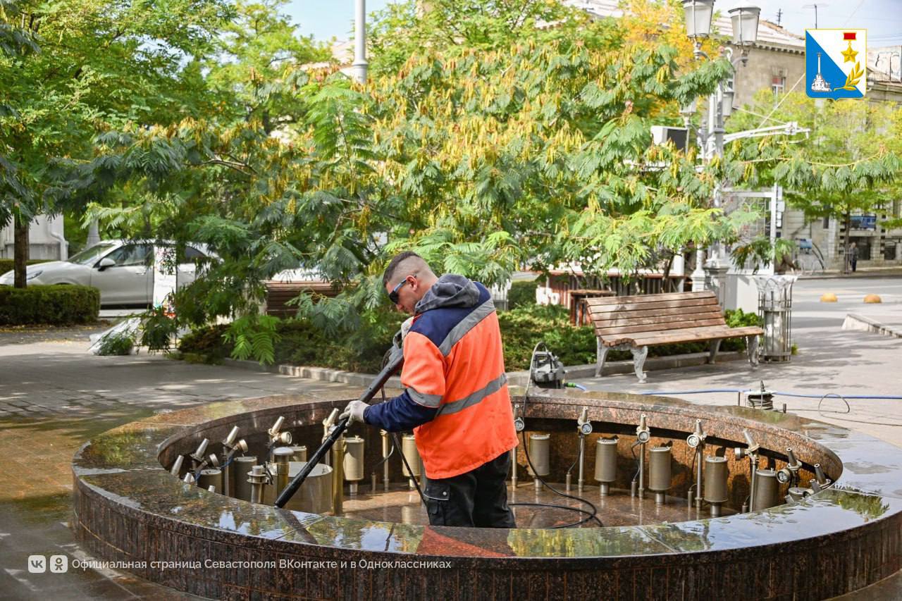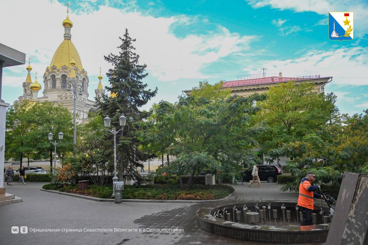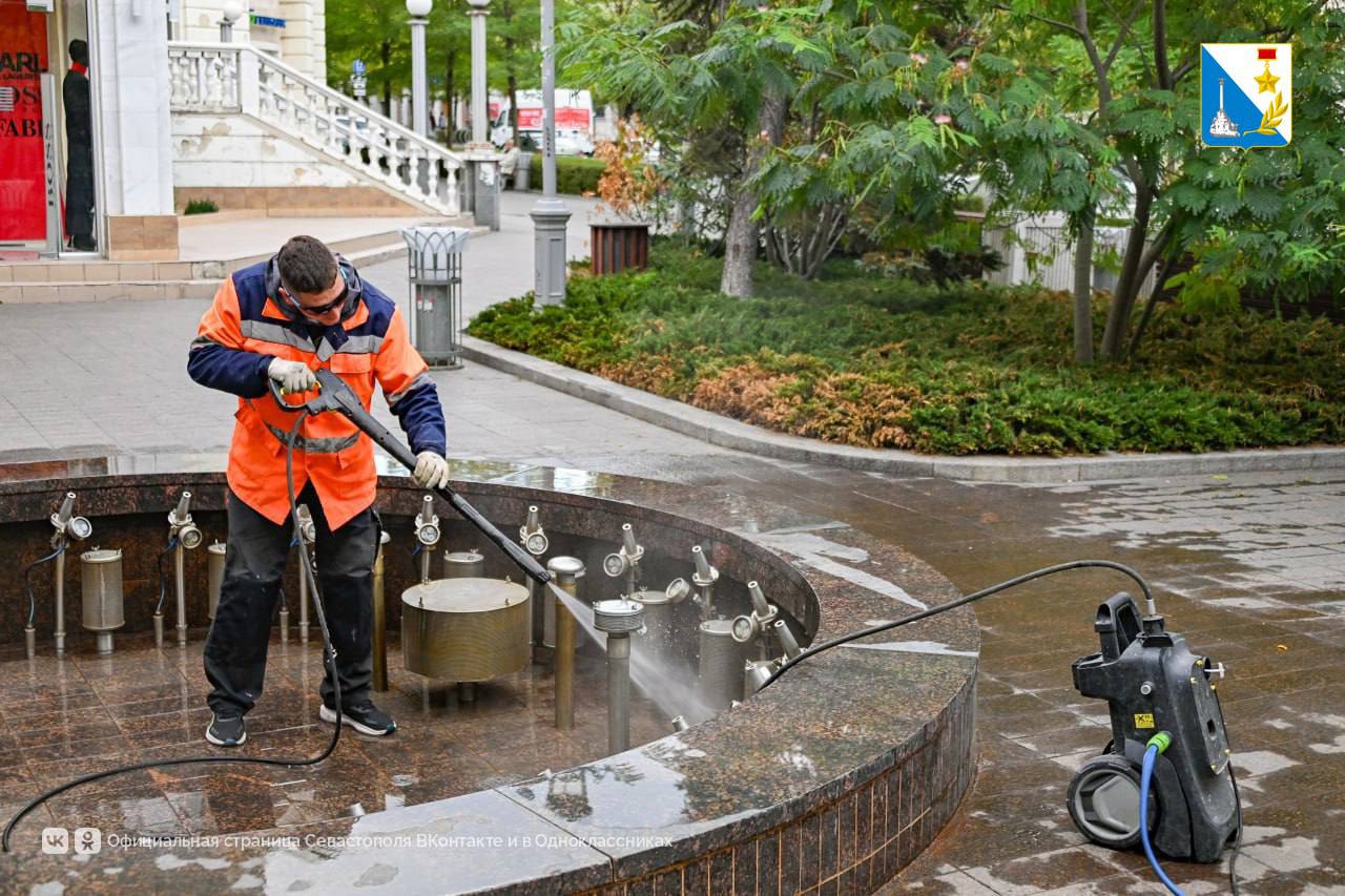 Сейчас работают на фонтане напротив Покровского собора — там приступили к мытью чаши после слива воды из систем.