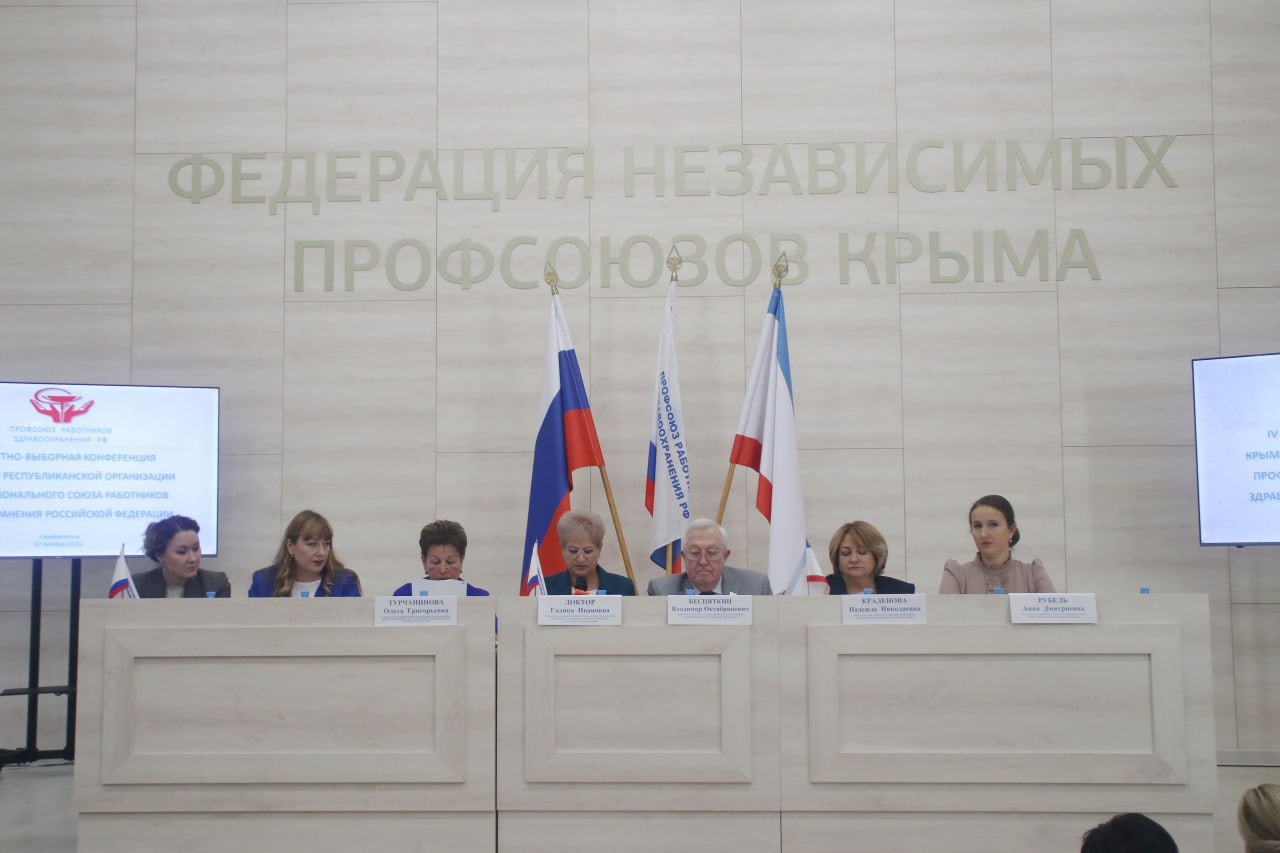 В отчётно-выборной конференции приняли участие заместитель председателя Профессионального союза работников здравоохранения Российской Федерации Владимир Беспяткин, председатель Комитета Государственного Совета Республики Крым по здравоохранению Анна Рубель, лидер регионального профобъединения Надежда Краденова, замдиректора Территориального фонда ОМС Республики Крым Екатерина Григорьева, начальник управления кадровой политики Минздрава Крыма Елена Алипатова и другие социальные партнеры.