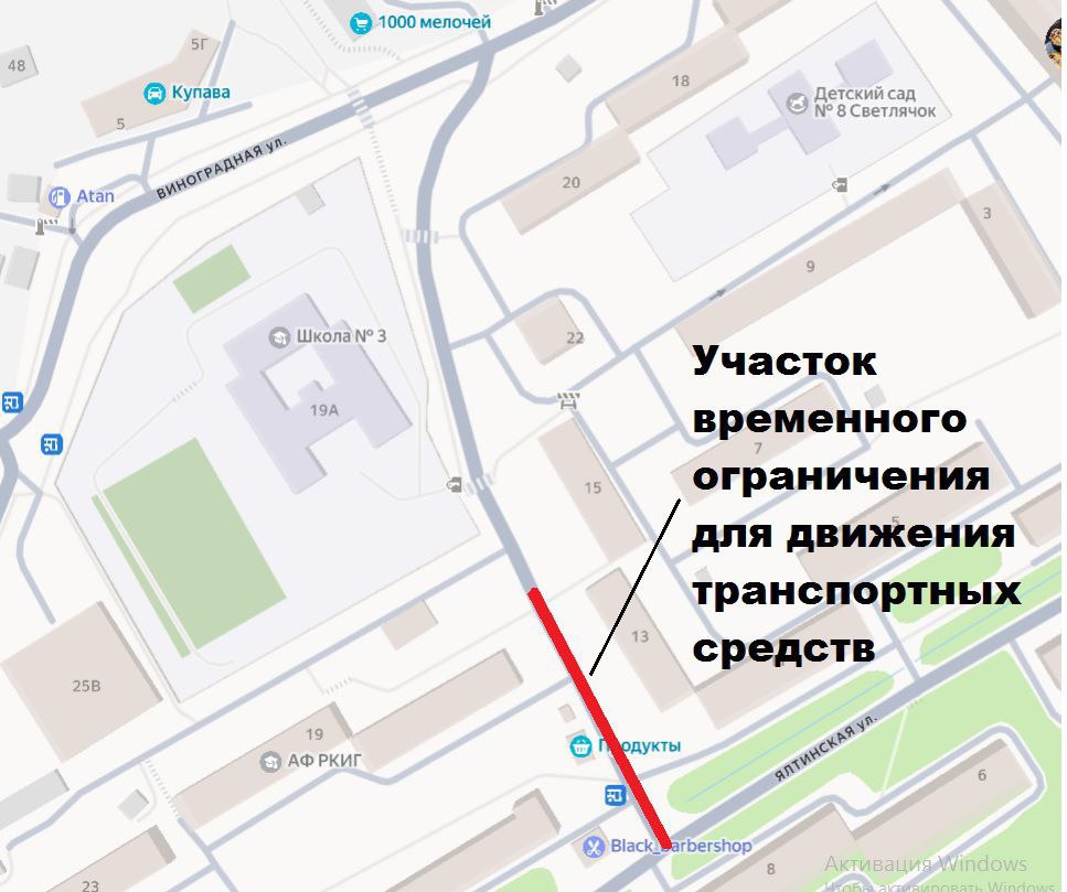В связи с необходимостью выполнения аварийно-восстановительных работ на сетях теплоснабжения на ул. Ялтинская, в период с 09.10.2025 по 12.10.2025, будет введено временное ограничение для движения транспортных средств. Остановка маршрута №8 временно будет осуществляться на участке в районе дома №22 по ул. Виноградная.