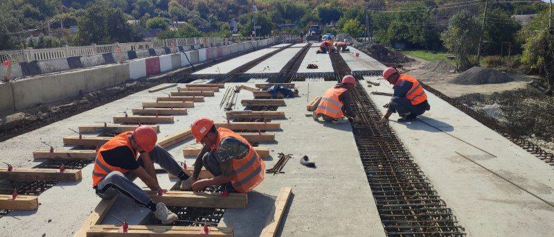 Параллельно ведутся работы по расширению подходов к мосту: армирование, земляные и бетонные работы, фрезерование асфальта, монтаж закладных под барьерное ограждение.