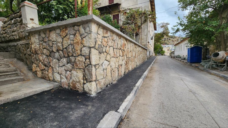 Основное внимание в ходе ремонта было уделено восстановлению подпорной стены — ключевого инженерного элемента, обеспечивающего устойчивость склона и сохранность прилегающей инфраструктуры. Специалисты полностью демонтировали старую бутовую кладку объемом 1,4 кубометра, после чего выполнили устройство нового ленточного фундамента и возвели прочную бутовую стену объемом 16 кубометров.