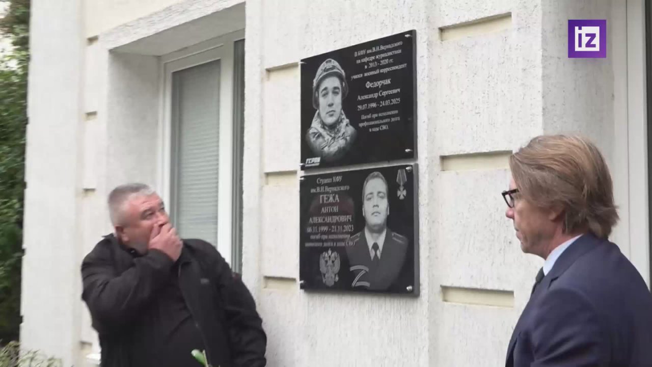 В Ботаническом саду КФУ в Симферополе открыли мемориальную табличку в честь погибшего в зоне СВО корреспондента "Известий" Александра Федорчака.