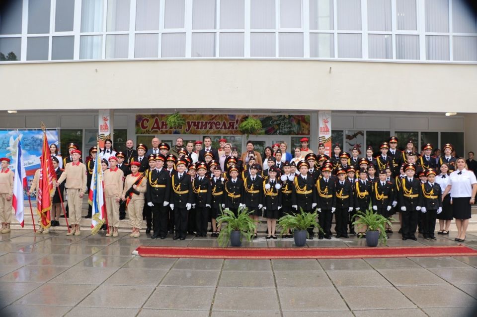 Поздравили пятиклассников с посвящением в кадеты и юнармейцы: первый заместитель начальника штаба ВВПОД «Юнармия», заместитель председателя Всероссийской общественной организации ветеранов «Боевое братство», полковник, ветеран боевых действий, ветеран труда и военной службы Виктор Кауров; начальник регионального штаба Всероссийского детско-юношеского военно-патриотического общественного движения «Юнармия» Сергей Гаврильчук; председатель Бахчисарайского городского совета Ольга Кулинченко; председатель Бахчисарайского городского совета Ольга Урайкина, муниципальный координатор проекта «Навигаторы детства» Айше Саттарова; помощник благочинного по Бахчисарайскому церковному округу иерей Стефан Линский.