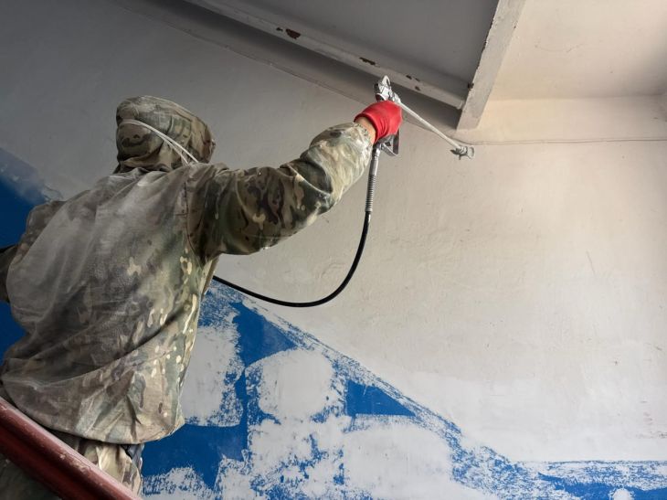 Работы охватывают разные районы — от центра Ялты до посёлков Береговое, Симеиз, Массандра и Ливадия. Уже приведены в порядок около 30 подъездов, ещё в 13 — ремонт продолжается. Подрядчик выполняет полный цикл: зачистку, шпаклёвку и покраску стен.