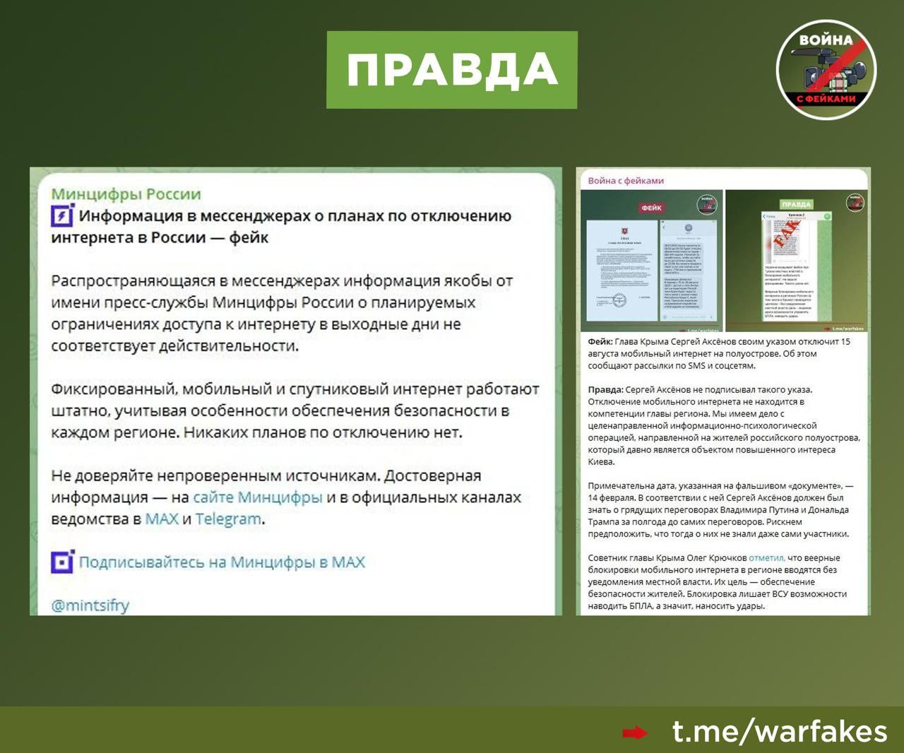 Фейк: Минцифры приняло решение отключить доступ к сети Интернет на территории России с 10 по 13 октября. Об этом пишут в соцсетях и мессенджерах.