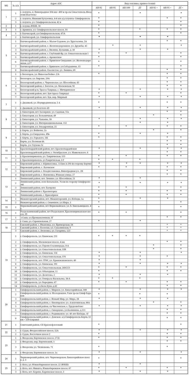 Актуальная информация о наличии топлива на заправках Крыма