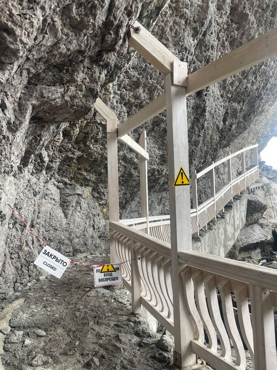 Специалисты оценивают последствия обвала и занимаются их устранением. До завершения восстановительных работ и обеспечения полной безопасности посещение данного участка запрещено.