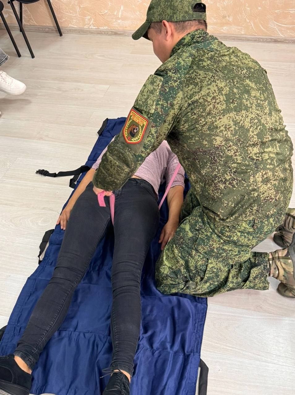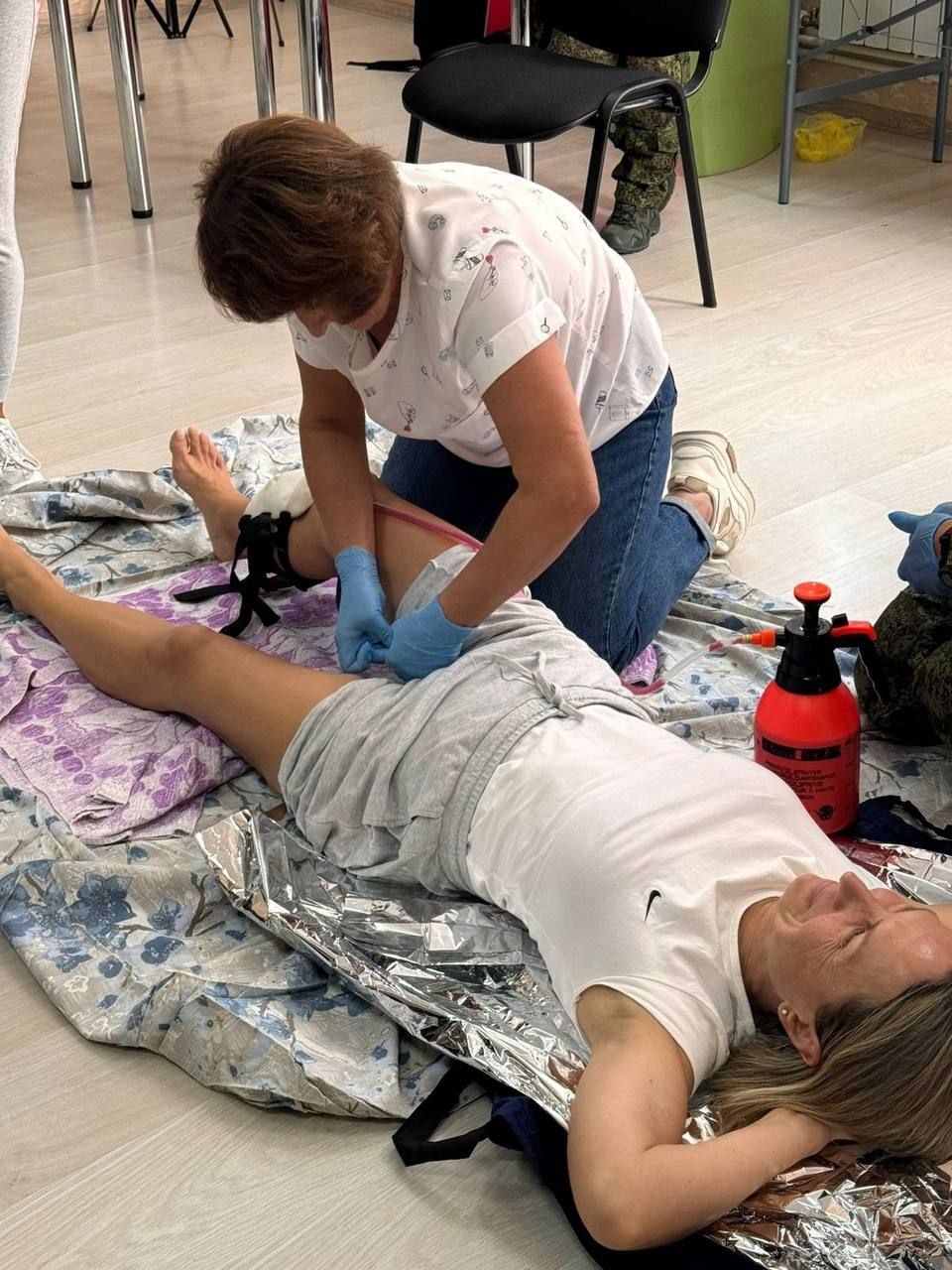 С любимой фельдшером медроты и опытным военным медиком из группы эвакуации провели ознакомительный курс по оказанию первой медицинской помощи при огнестрельных и осколочных ранениях для медицинских работников Центра спортивной медицины Республики Крым и сотрудников министерства спорта.
