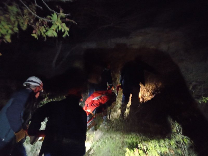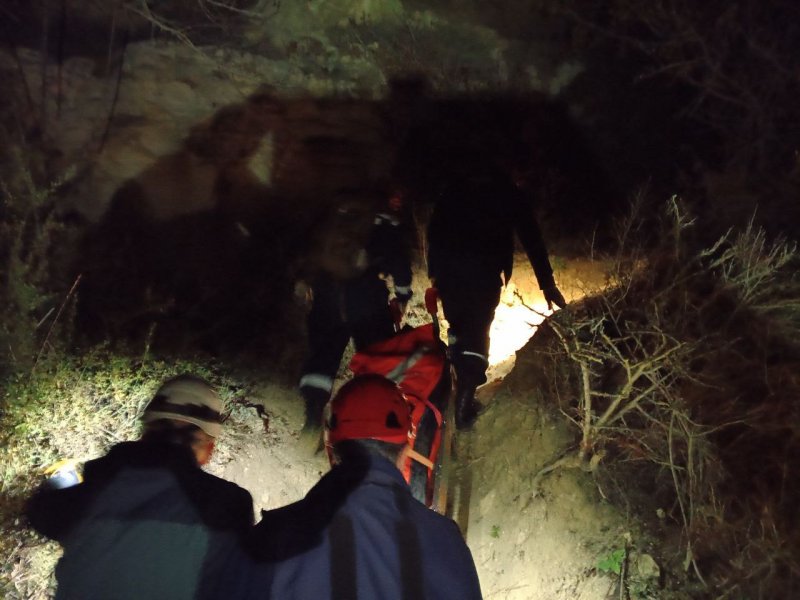 Как установили на месте, пострадавший упал с высоты около 15 метров, получил черепно-мозговую травму, множественные ушибы и возможные переломы. Спасатели оказали первую доврачебную помощь, зафиксировали пострадавшего на носилках и с помощью альпинистского снаряжения эвакуировали его по крутому склону в безопасную зону, где уже дежурила бригада скорой помощи. Работу осложняли темное время суток и сложный рельеф местности.