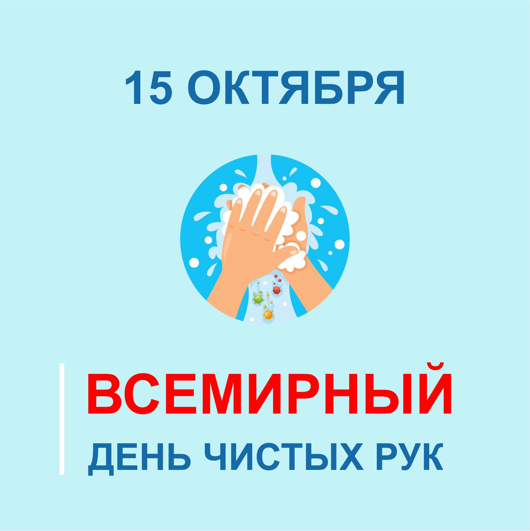 Всемирный день чистых рук (мытья рук) - 15 октября - посвящен повышению осведомленности и понимания важности мытья рук с мылом, как эффективного и доступного способа профилактики болезней и спасения жизней.