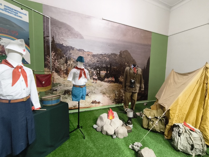 Под витринами и на стенах развешаны значки, ленты, путевки, поделки ребят. Стенгазеты 1970-х годов напоминают нынешние социальные сети: «Сегодня, 26 июля, наш отряд вместе со своими друзьями - чилийскими пионерами - проводил трудовой десант. Мы работали на территории отдела снабжения. На этом предприятии мы занимались сортировкой кирпича около недавно построенного здания. Все дружно и весело работали, друг друга подбадривали шутками и очень быстро справились с этой работой…»