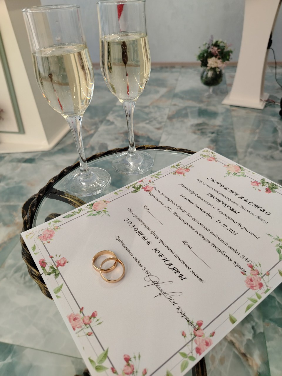 Сотрудники отдела ЗАГС, поздравили юбиляров, вручив цветы и «Свидетельство о торжественной регистрации золотого брака», отметив, что построить, а главное, сохранить такую крепкую семью, где до сих пор царит любовь и нежность - большой труд двоих. На такие пары стоит равняться и каждый день у них учиться мудрости и искусству семейной жизни.