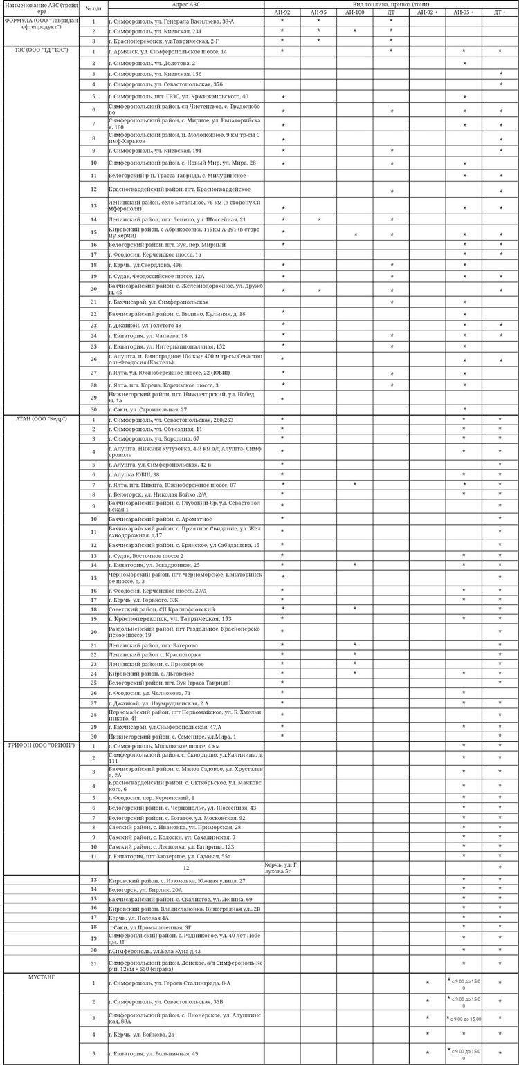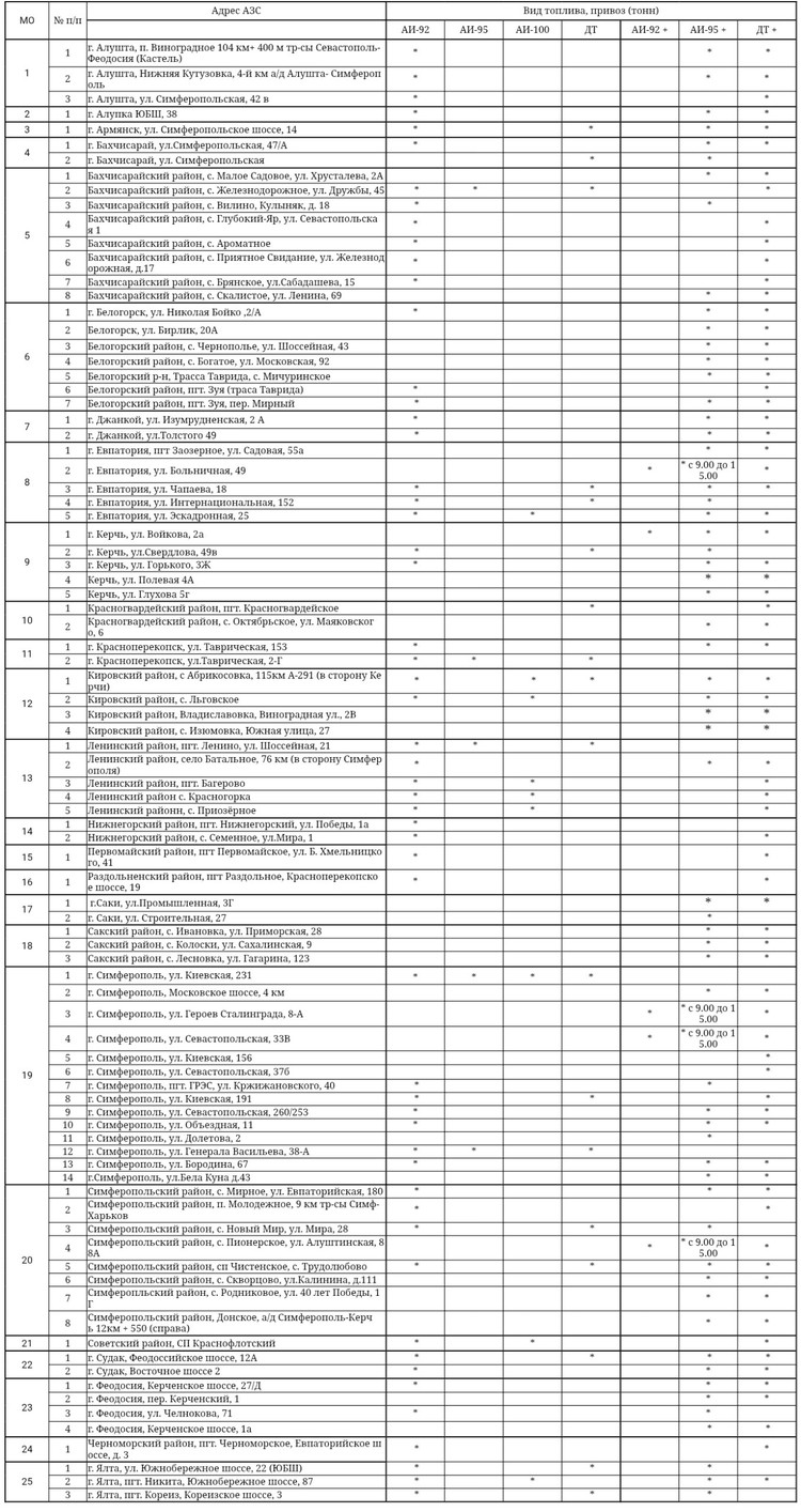 Гоцанюк добавил, что список АЗС обновляется каждый день. Ознакомиться с ним можно на сайтах Совмина и Минэнерго Крыма. Актуальный список опубликован ниже.
