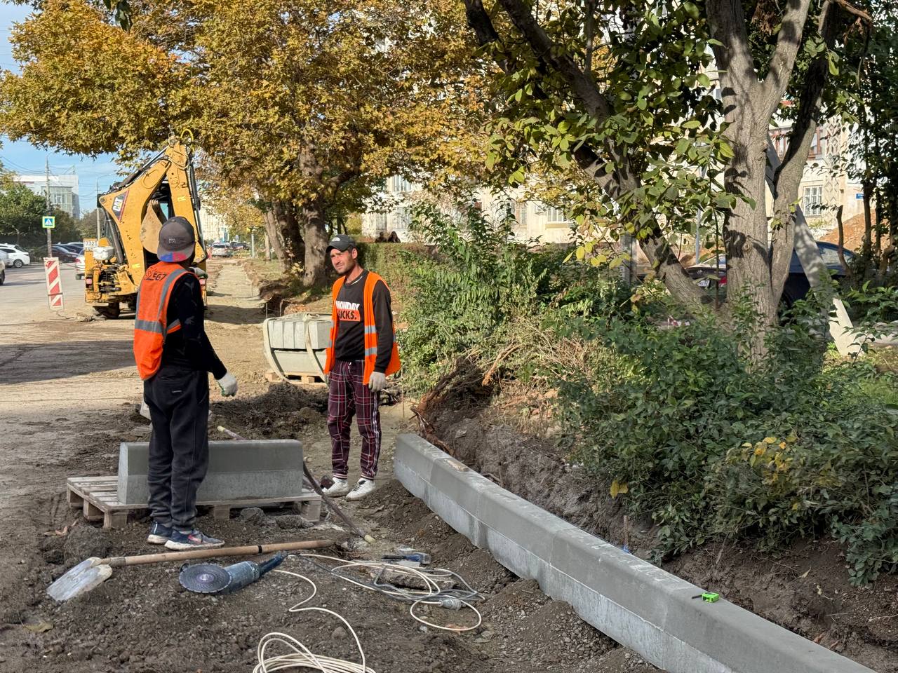 На данный момент продолжается замена бордюрного камня, приступили к укладке выравнивающего слоя асфальтового покрытия.