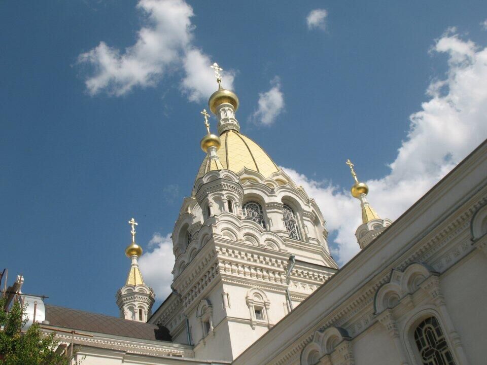 Покровский собор – пятикупольный, построен с элементами древнерусского стиля, у него есть верхний и нижний храм и шесть престолов – в честь праздника Покрова Пресвятой Богородицы, великомученика Пантелеймона, апостолов Петра и Павла, преподобного Серафима Саровского, святого князя Владимира и святых мучениц Веры, Надежды, Любови и матери их Софии.