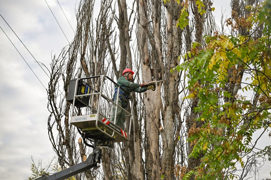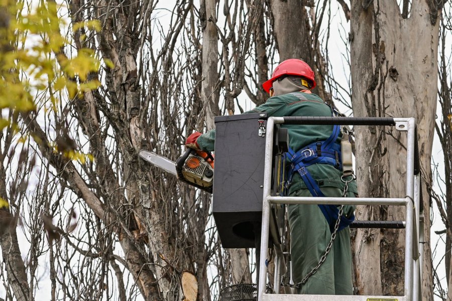 Сегодня бригада пильщиков «Парков и скверов» работает в районе школы № 22. Здесь спилят 5 сухих деревьев и обрежут сухие ветки на 10.