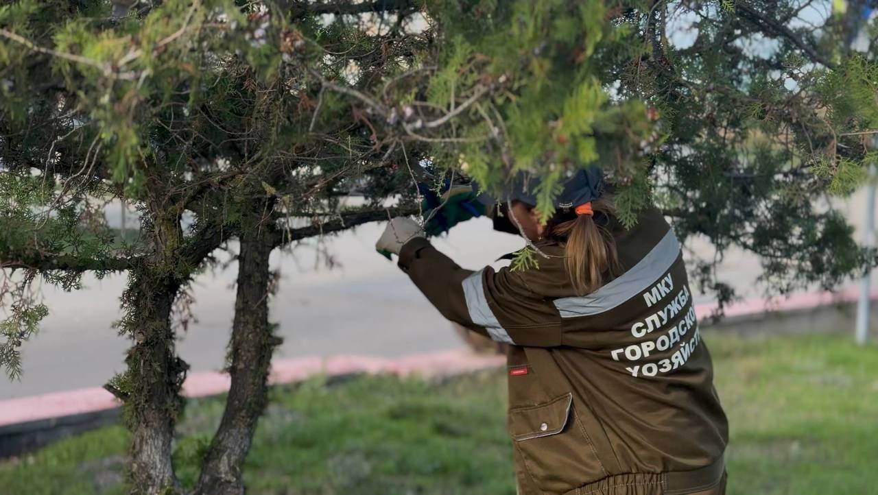 Параллельно с цветочным оформлением ведутся работы по уходу за зелеными насаждениями.