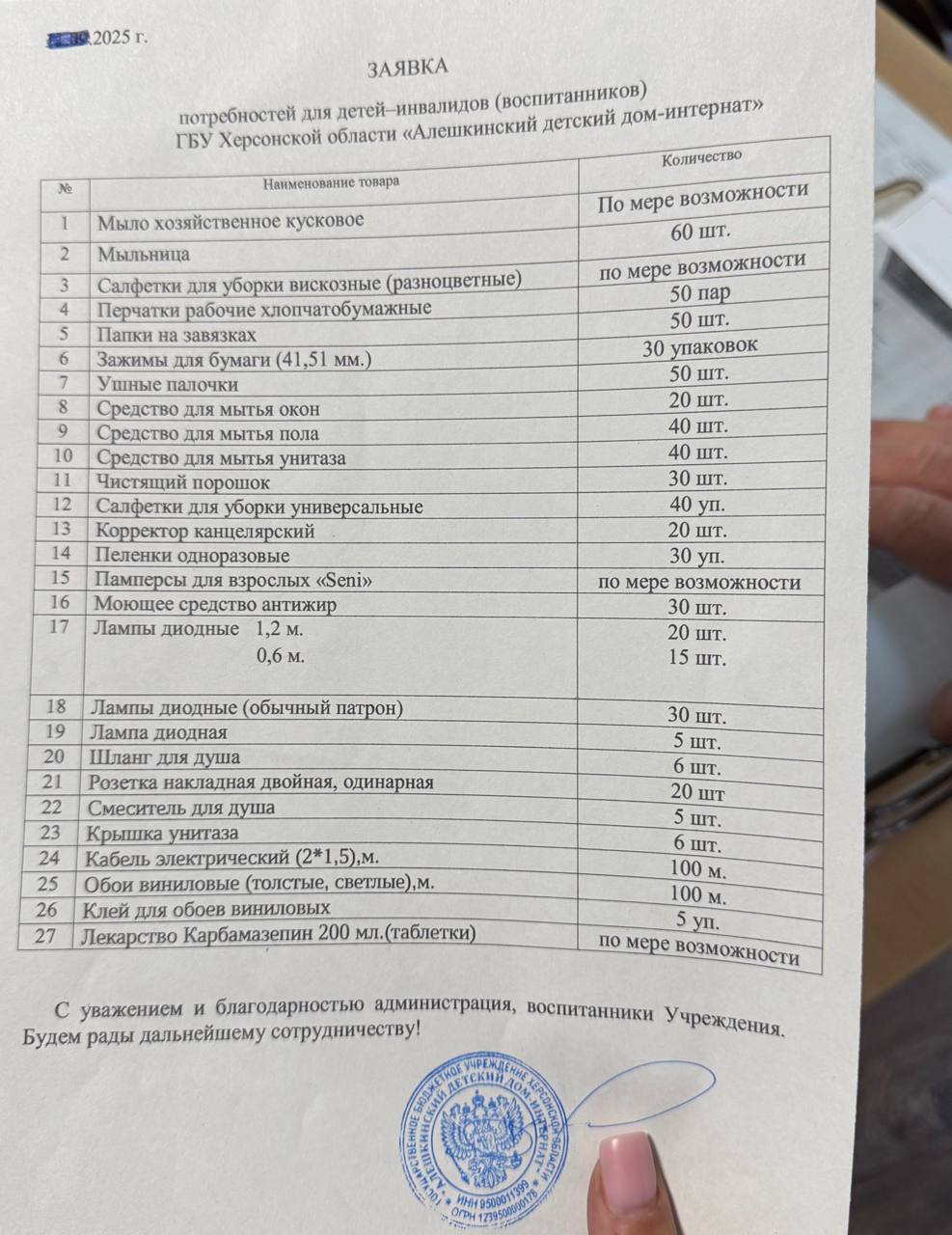 Средства гигиены, бытовая химия, мелочи для хозяйства и мелкого ремонта… Всё это – ежемесячные расходники учреждения, где не просто любят детей с особенностями развития, а заботятся о них лучше, чем родные родители.