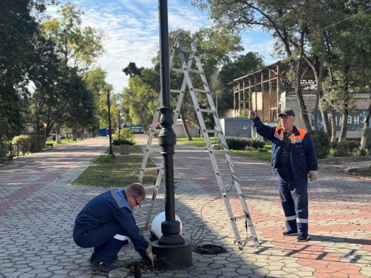 Сегодня бригада проверила исправность фонарей на городской набережной в районе бывшего летнего кинотеатра и в сквере Десантников и заменила повреждённые лампочки.