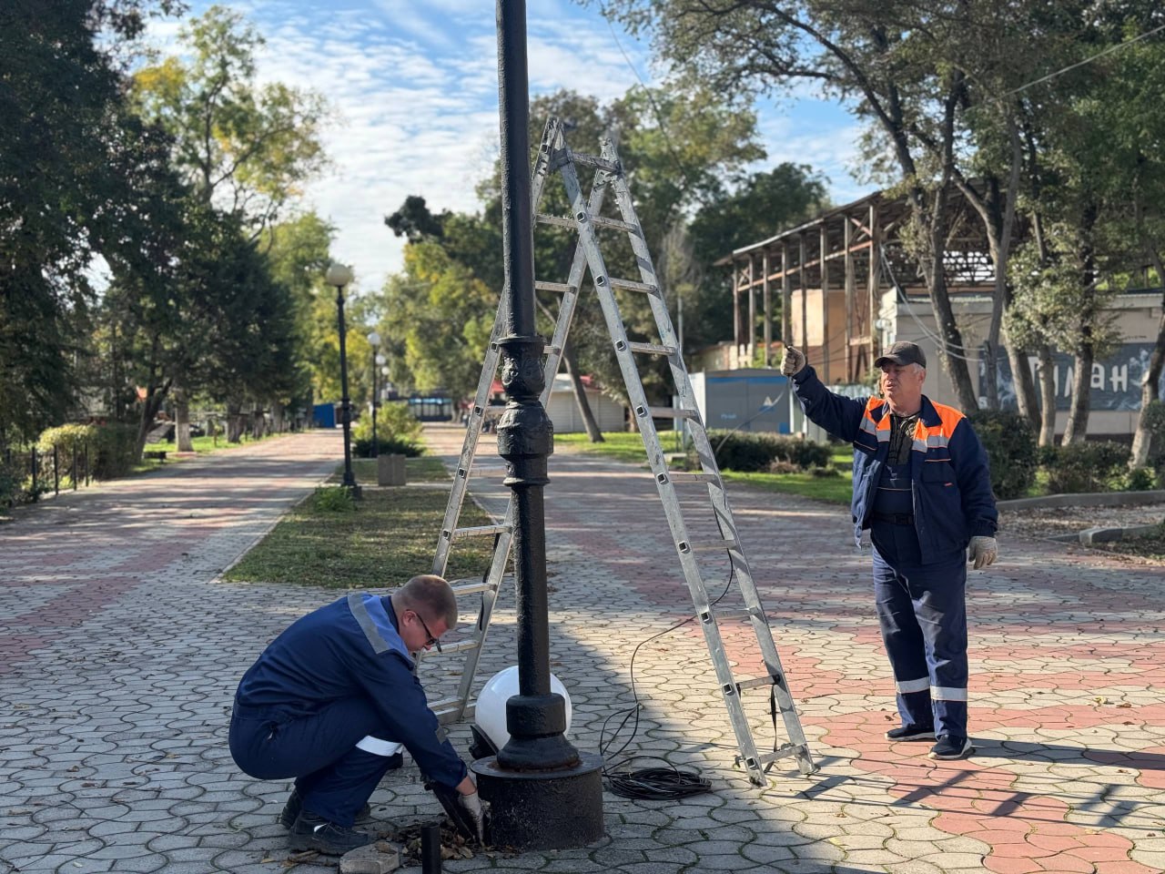 Сегодня бригада проверила исправность фонарей на городской набережной в районе бывшего летнего кинотеатра и в сквере Десантников. Заменила повреждённые лампочки.