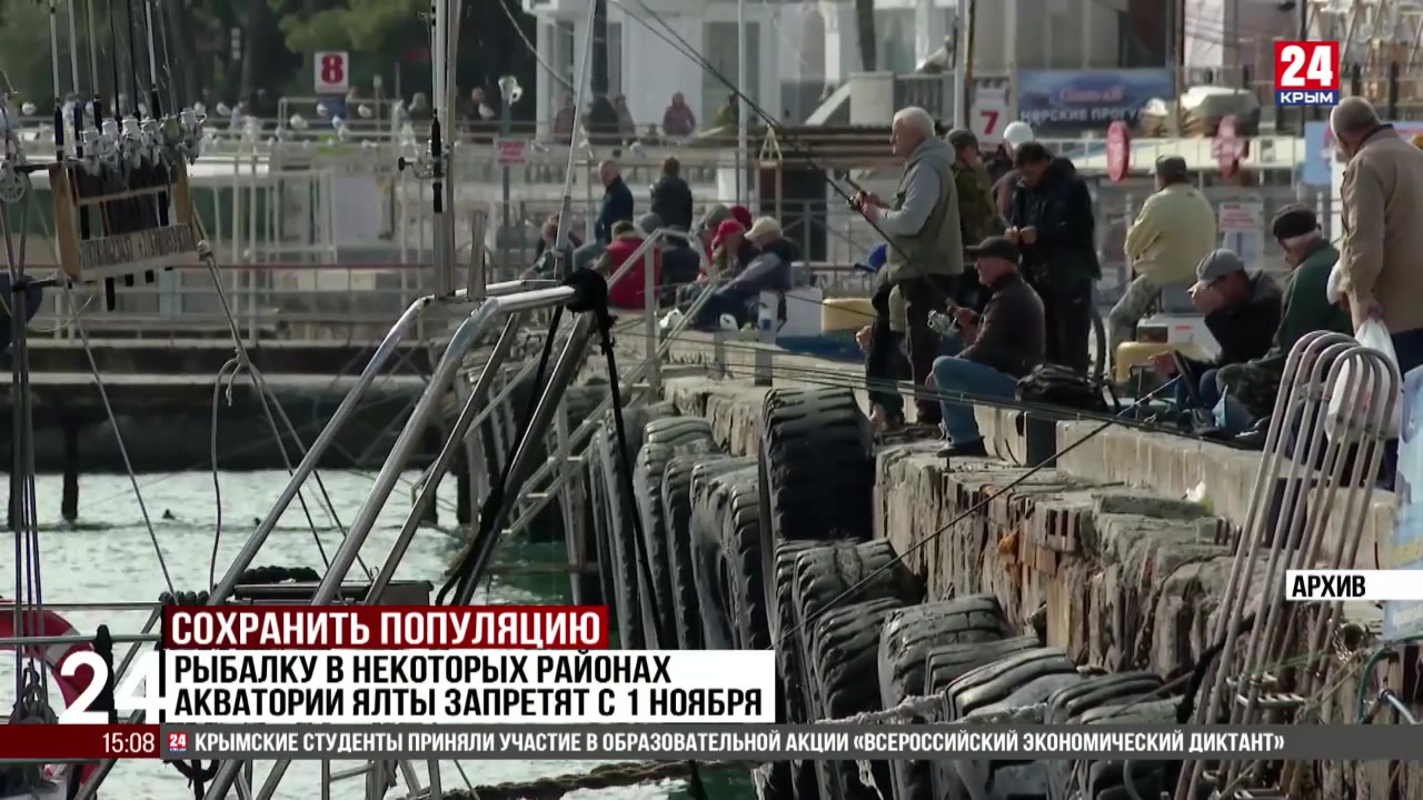 РыбалкуВ в некоторых районах акватории Ялты запретят с 1 ноября. Ограничения на вылов введут до 28 февраля. Добывать биоресурсы нельзя будетВ на расстоянии меньше 100 метров от морского порта, порта «Артек» и вдоль центральной набережной до устья реки Водопадной.В В администрации уточнили, что за пределами этой зоныВ ловля будет разрешена. Специалисты отмечают, такиеВ меры помогут сохранить популяцию обитателей Чёрного моря.