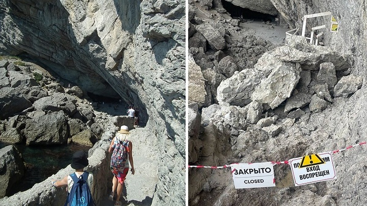 Об обрушении скалы над популярным туристическим маршрутом «Тропа Голицына» стало известно в субботу, 11 октября. В тот день, как и накануне, на полуостров обрушились дожди. Вода подмыла горную породу и один из кусков рухнул на скальную дорожку на пути к гроту Голицына. Кстати, подобные обвалы здесь уже случались. Один из последних произошел в начале 2000-х годов.
