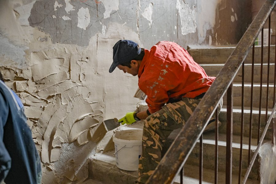 На сегодняшний день работники управляющей компании уже подготовили подъезд к ремонту: очистили стены, потолки и окна. Сейчас строители приступили к грунтованию и шпаклеванию поверхностей для дальнейшего нанесения краски и побелки. Закончить ремонт планируют в VI квартале этого года.