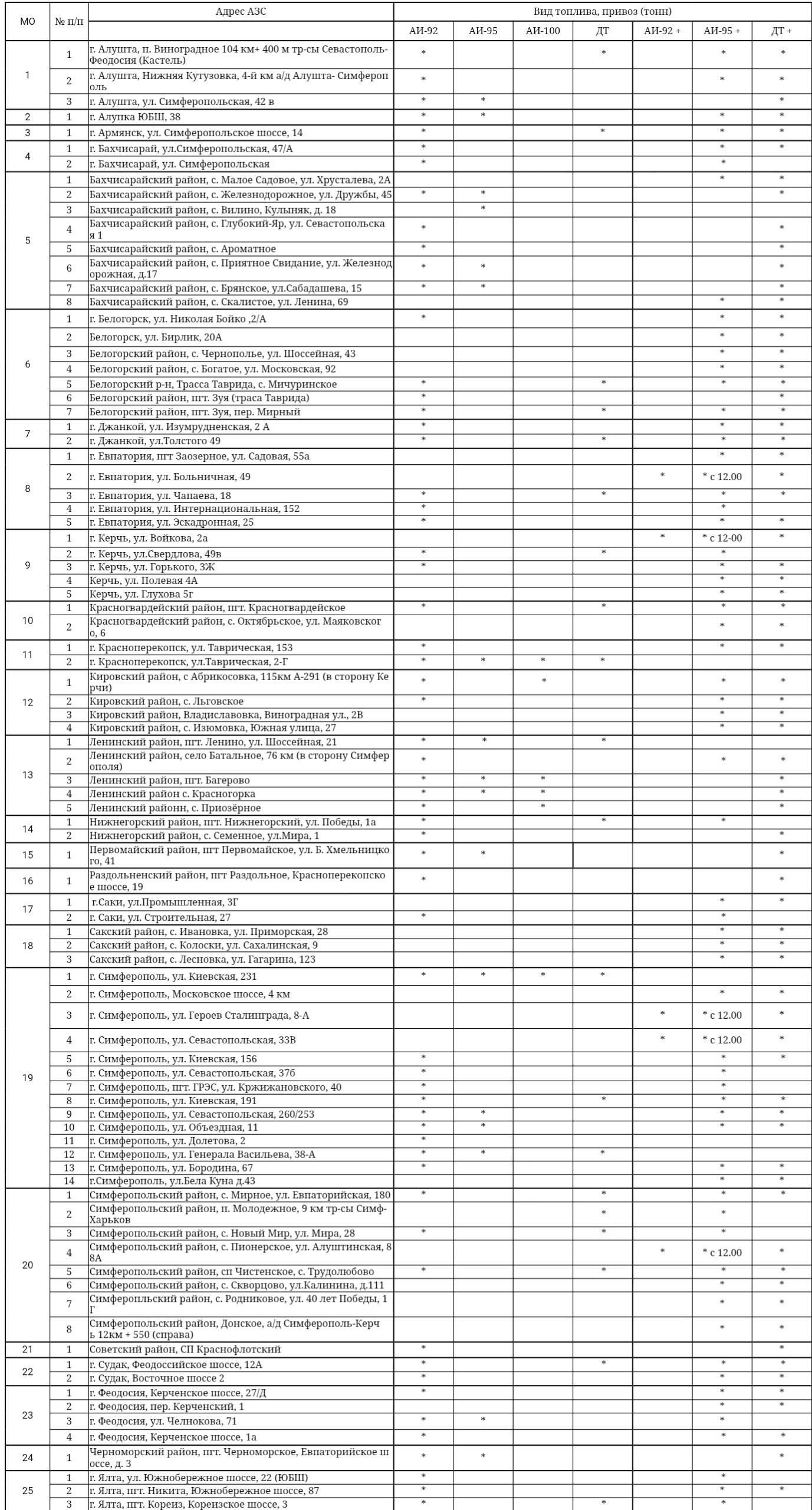Бензин в Крыму есть в свободной продаже на 89 АЗС.
