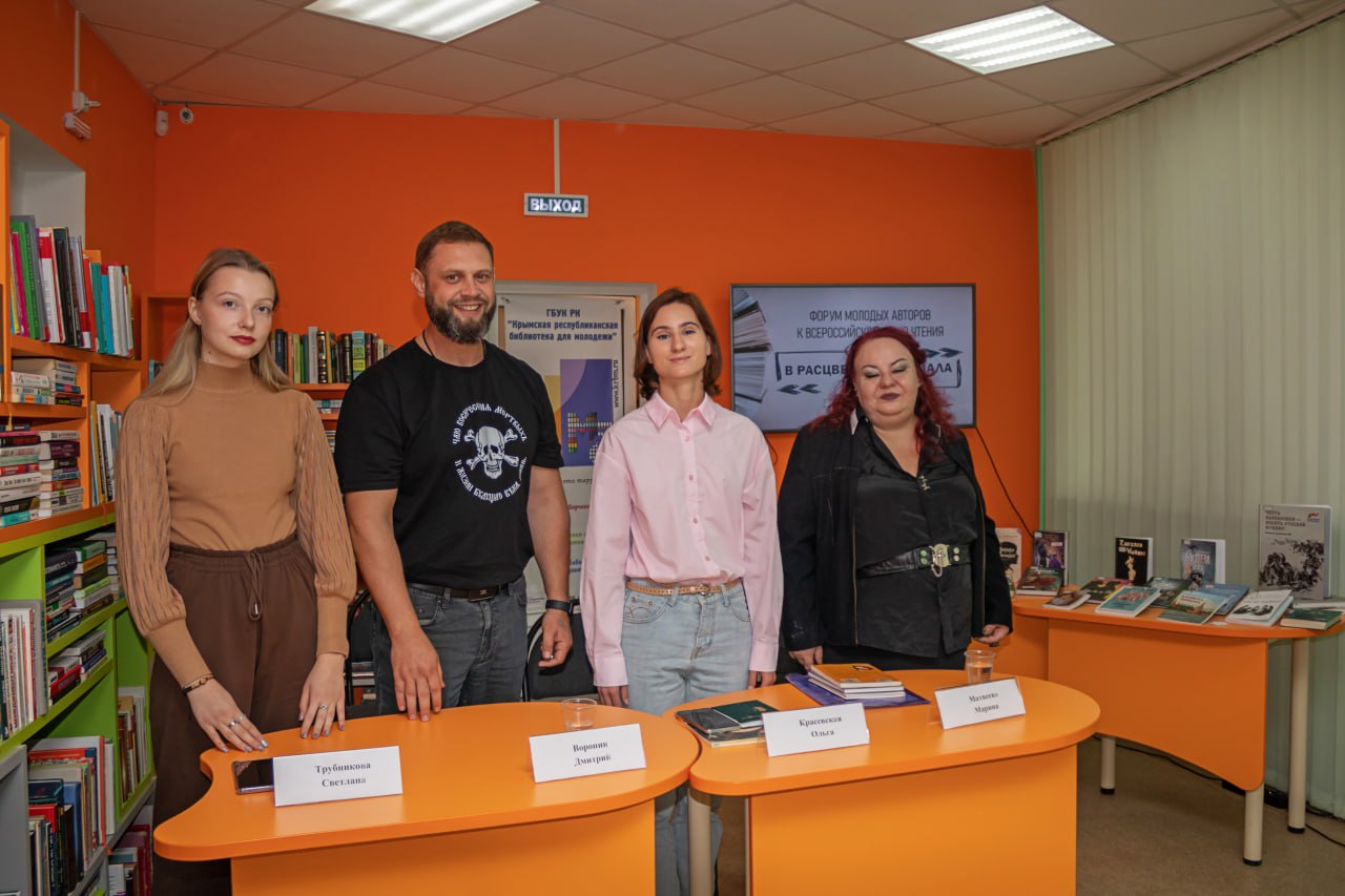 Крымская республиканская библиотека для молодежи провела форум молодых авторов «В расцвете потенциала», приуроченный к Всероссийскому дню чтения. В качестве специального гостя выступил Дмитрий Воронин – ветеран боевых действий, заместитель руководителя крымского филиала Фонда «Защитники Отечества».