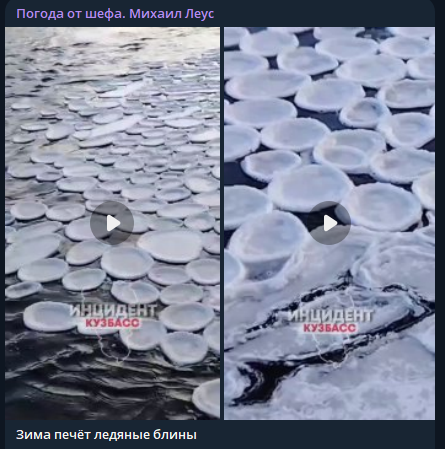 Синоптик Михаил Леус обратил внимание, что на Кузбассе зима уже "печёт ледяные блины". Видео необычного природного явления делятся жители в социальных сетях.