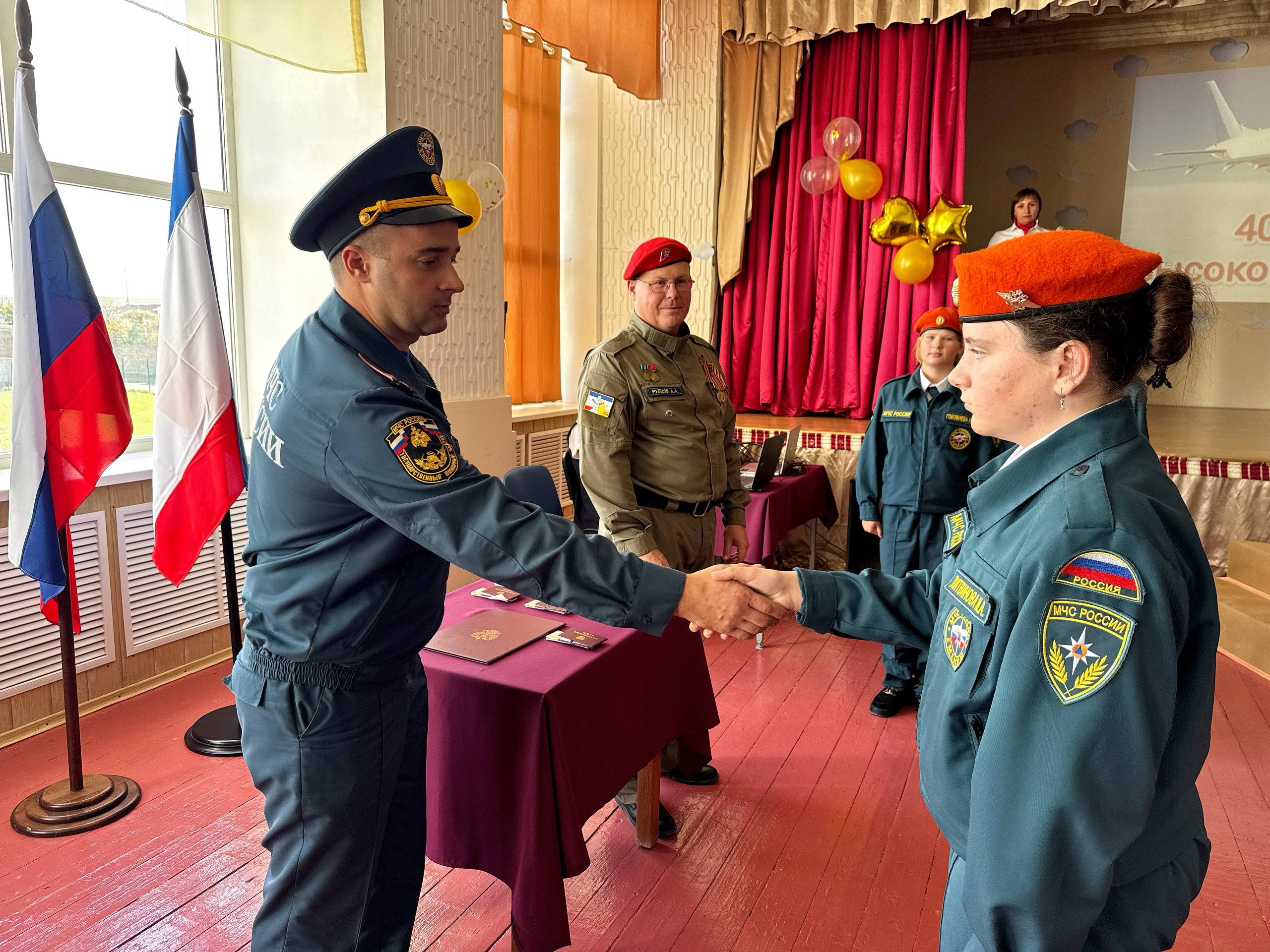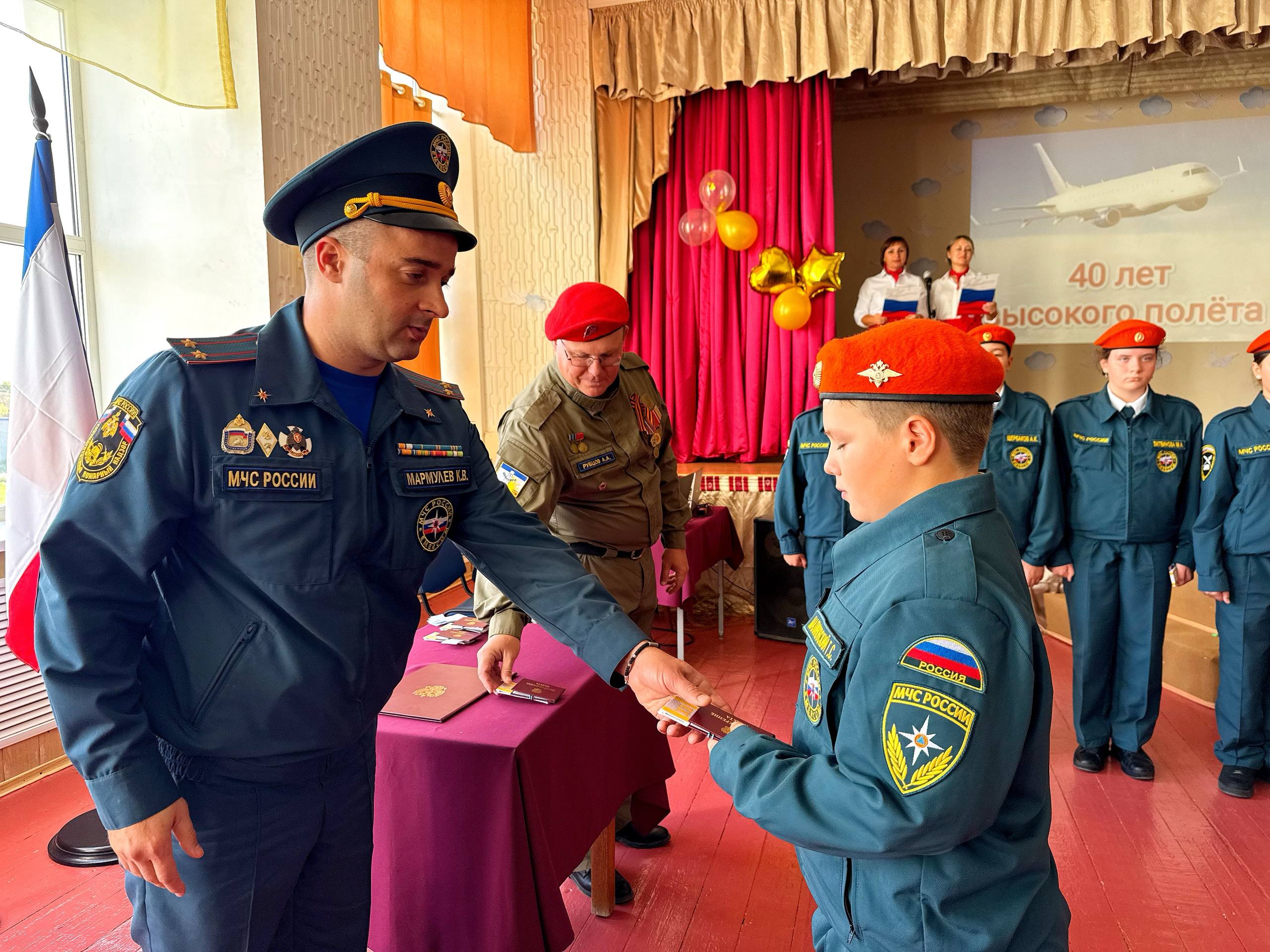 Ребята выбрали направление МЧС. Церемонию принятия в кадеты провел начальник ОНД Черноморского района Кирилл Мармулев.