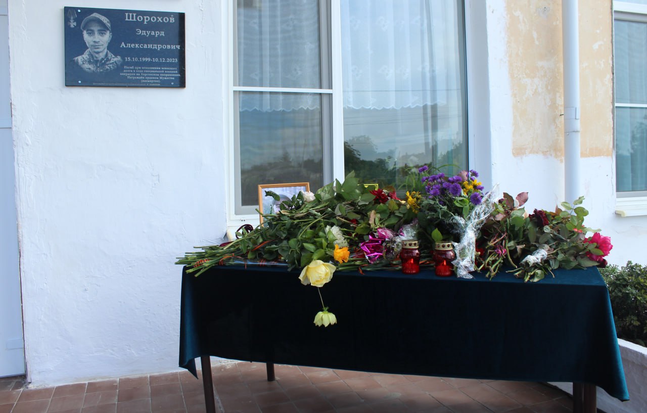15 октября в селе Некрасовке, на здании МБОУ «Некрасовская СШ», открыли мемориальную доску погибшему при исполнении воинского долга в ходе Специальной военной операции на Украине, Кавалеру ОРДЕНА МУЖЕСТВА, Герою СВО - Шорохову Эдуарду Александровичу.