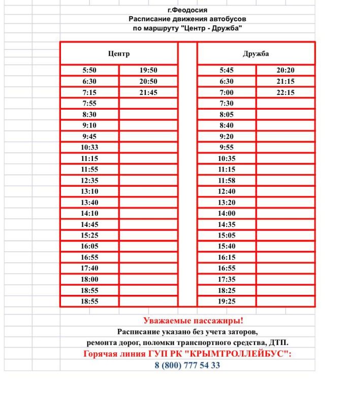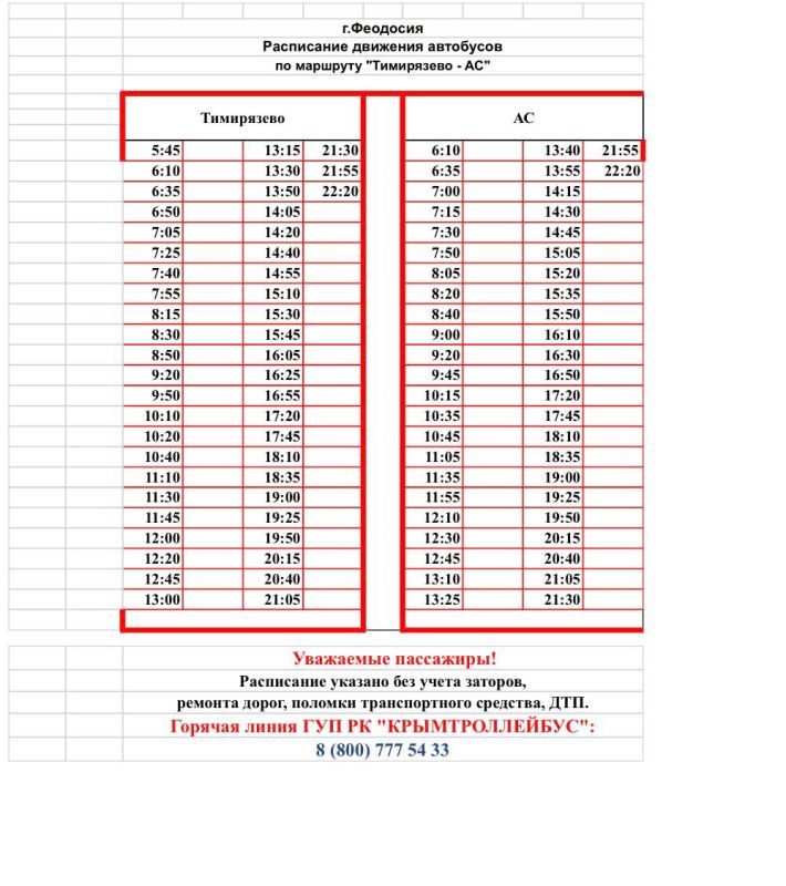 Опубликовано расписание движения двух автобусов в Феодосии.