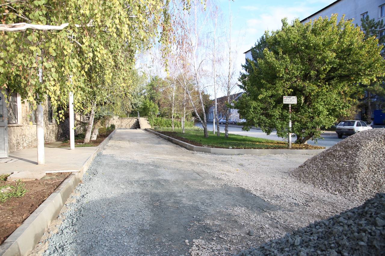 Во дворах по улицам Шевченко и Котовского выполняются работы по асфальтированию дороги и установке бордюров.