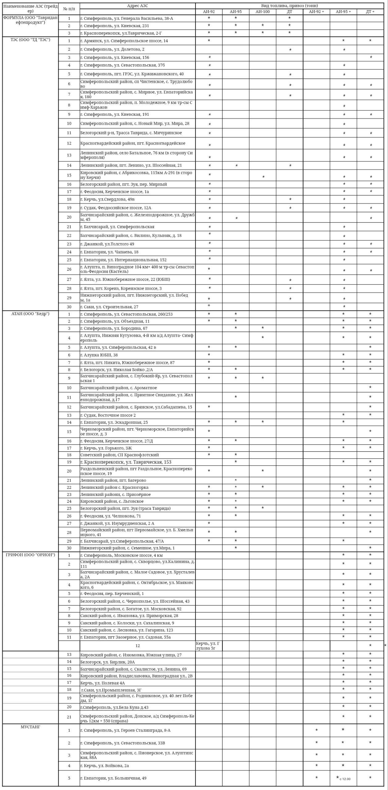 Перечень адресов АЗС обновляется ежедневно и доступен на официальных ресурсах: портале Правительства РК и Министерства топлива и энергетики РК.