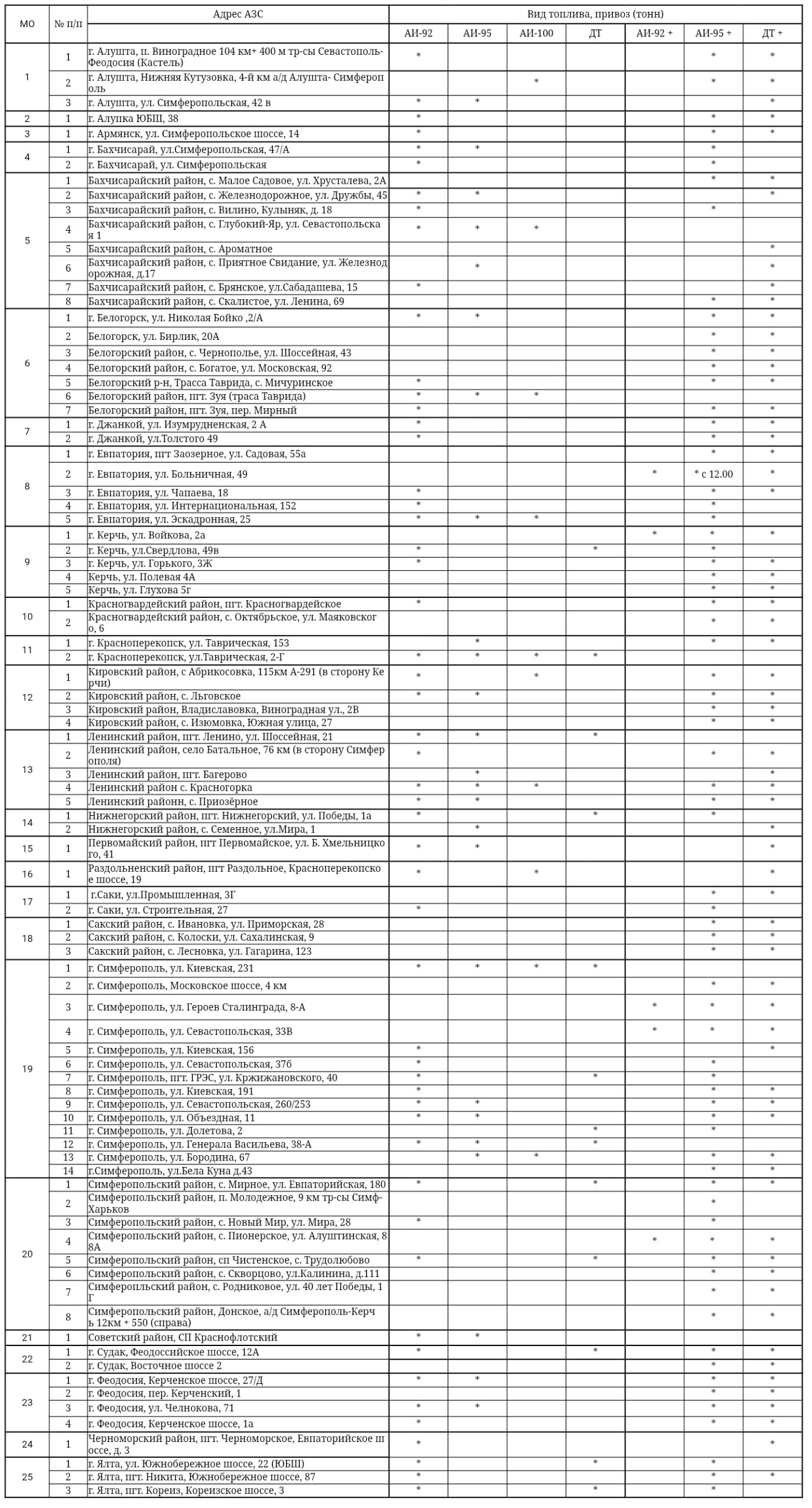 На сегодняшний день свободная реализация топлива осуществляется на 89 автозаправочных станциях Республики Крым.