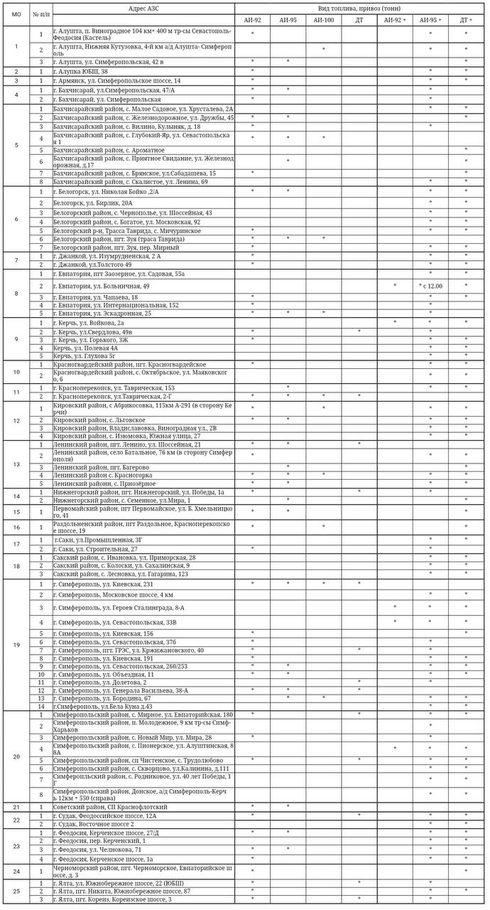 Актуальная информация о наличии топлива на заправках Крыма