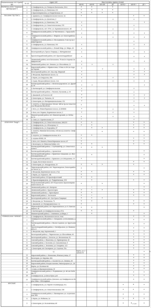 В четверг утром, 16 октября, 95-й и 92-й бензин есть в наличии на 89 АЗС в Крыму.