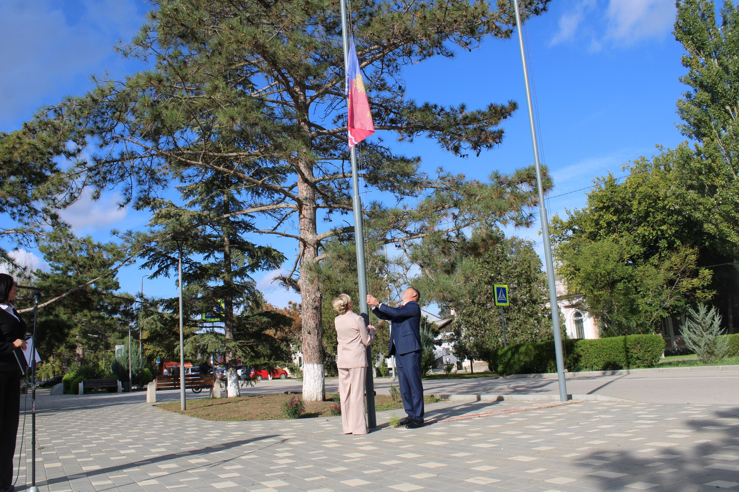 В ознаменование этого знаменательного события флаг района торжественно поднят на главном флагштоке главой муниципального образования Ленинский район Викторией Заботиной и главой администрации района Игорем Крутьковым.