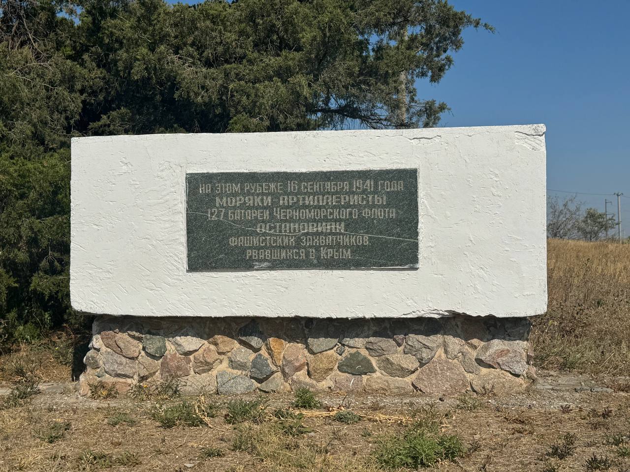 Рядом с орудием установлена стела, на которой высечены слова, проникающие в самое сердце: «На этом рубеже в сентябре 1941 года моряки-артиллеристы 127-й батареи Черноморского флота остановили фашистских захватчиков, рвавшихся в Крым». Эти слова – живое свидетельство ожесточенных боев, которые развернулись здесь осенью 1941 года.